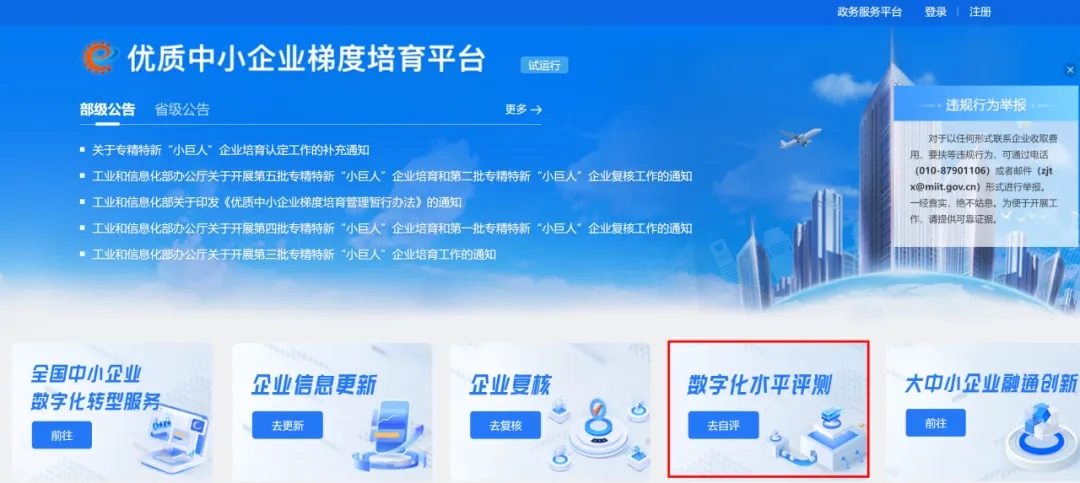 在优质中小企业梯度培育平台完成数字化水平免费自测,具体自测网址、相关标准等事宜,另行明确。