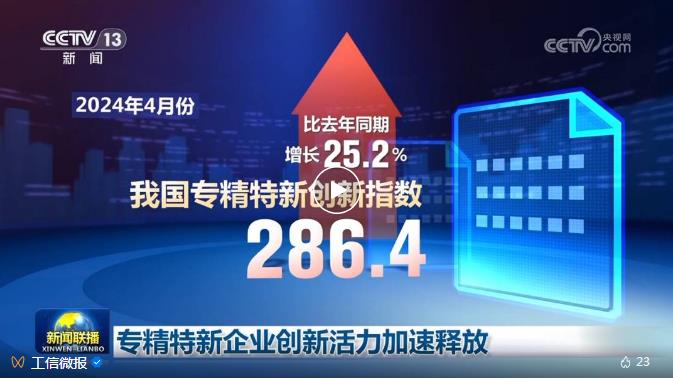 工业和信息化部赛迪研究院的最新数据显示,今年4月份,我国专精特新创新指数为286.4,比去年同期增长25.2%。从产业看,新材料、生物两大产业保持较强的创新活力,创新成果加速形成。